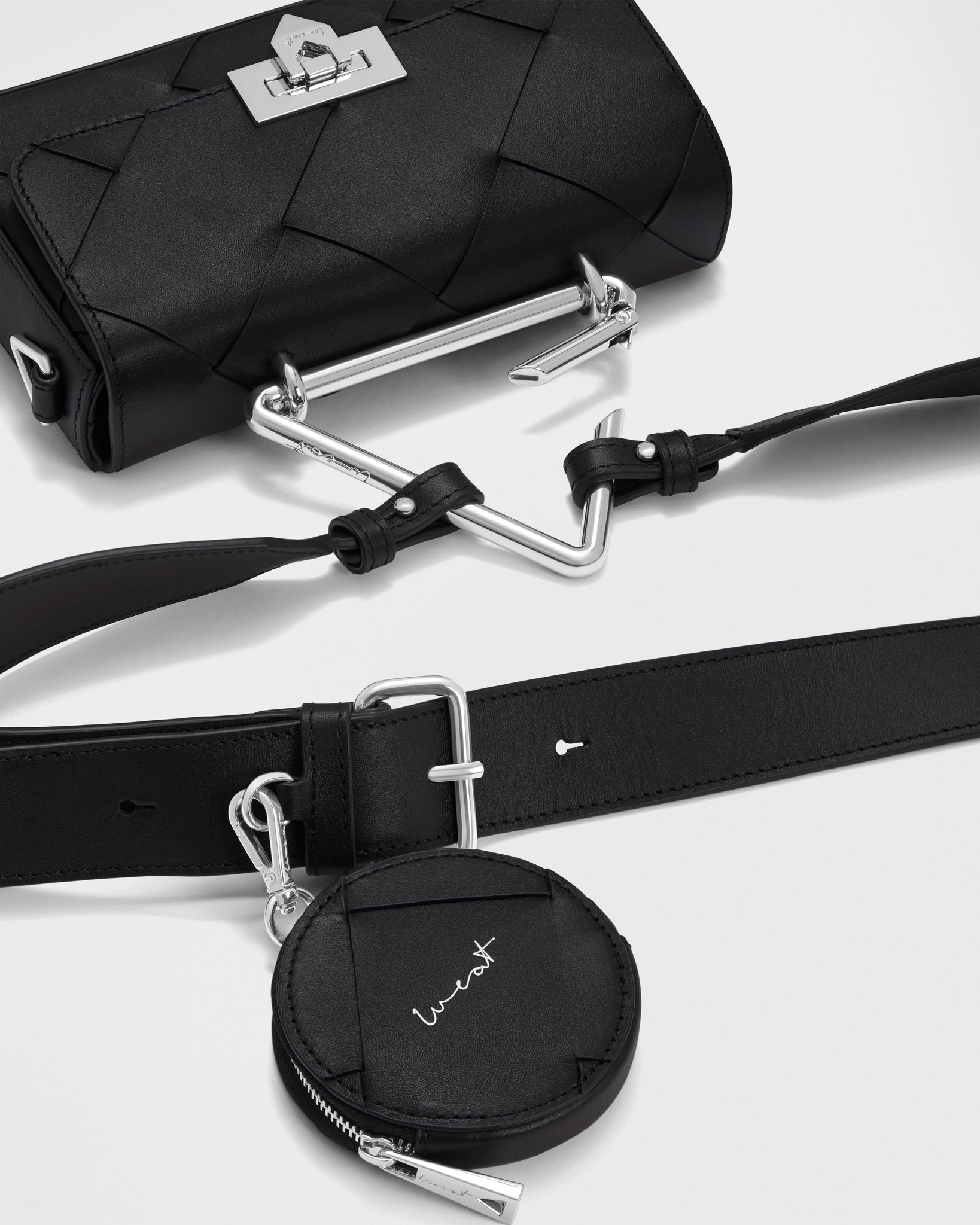 The WEAT signature triangle carabiner allows you to transform your most important accessory from a chic and classy clutch, to a cross-body, a belt-bag, or even an extra charm or storage on a shopper bag.
