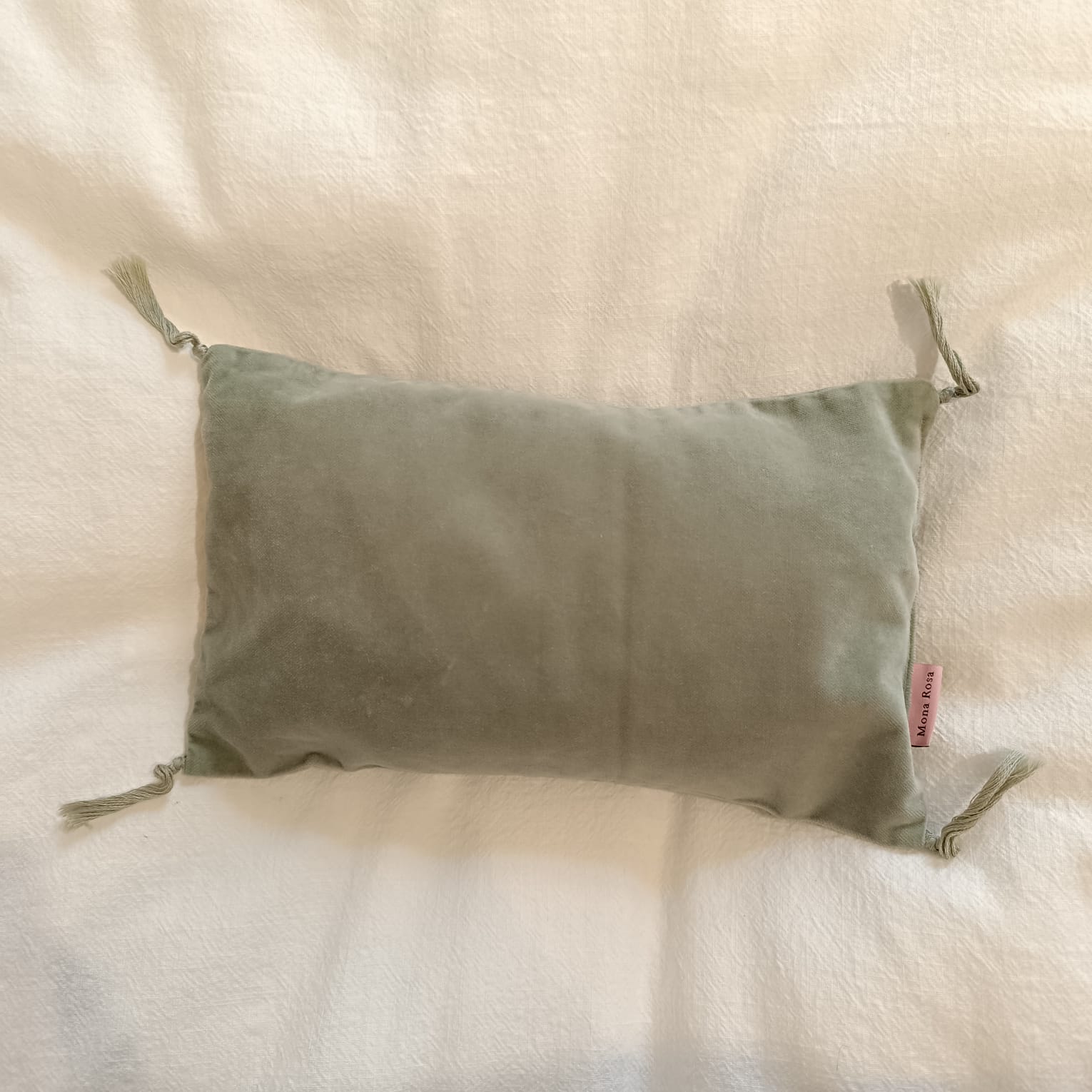 Looking for a cozy and comforting item? Look no further than our cherry stone cushion, available in linen, cotton, and plain velvet, and available in multiple colors. Subtle cotton thread pom-poms complete the look.